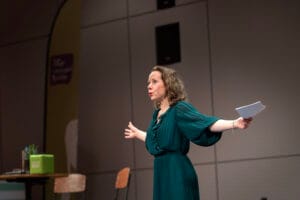 Wendelien Wouters is een ervaren vrouwelijke dagvoorzitter, moderator en trainer Leren Modereren met een achtergrond als theatermaker.